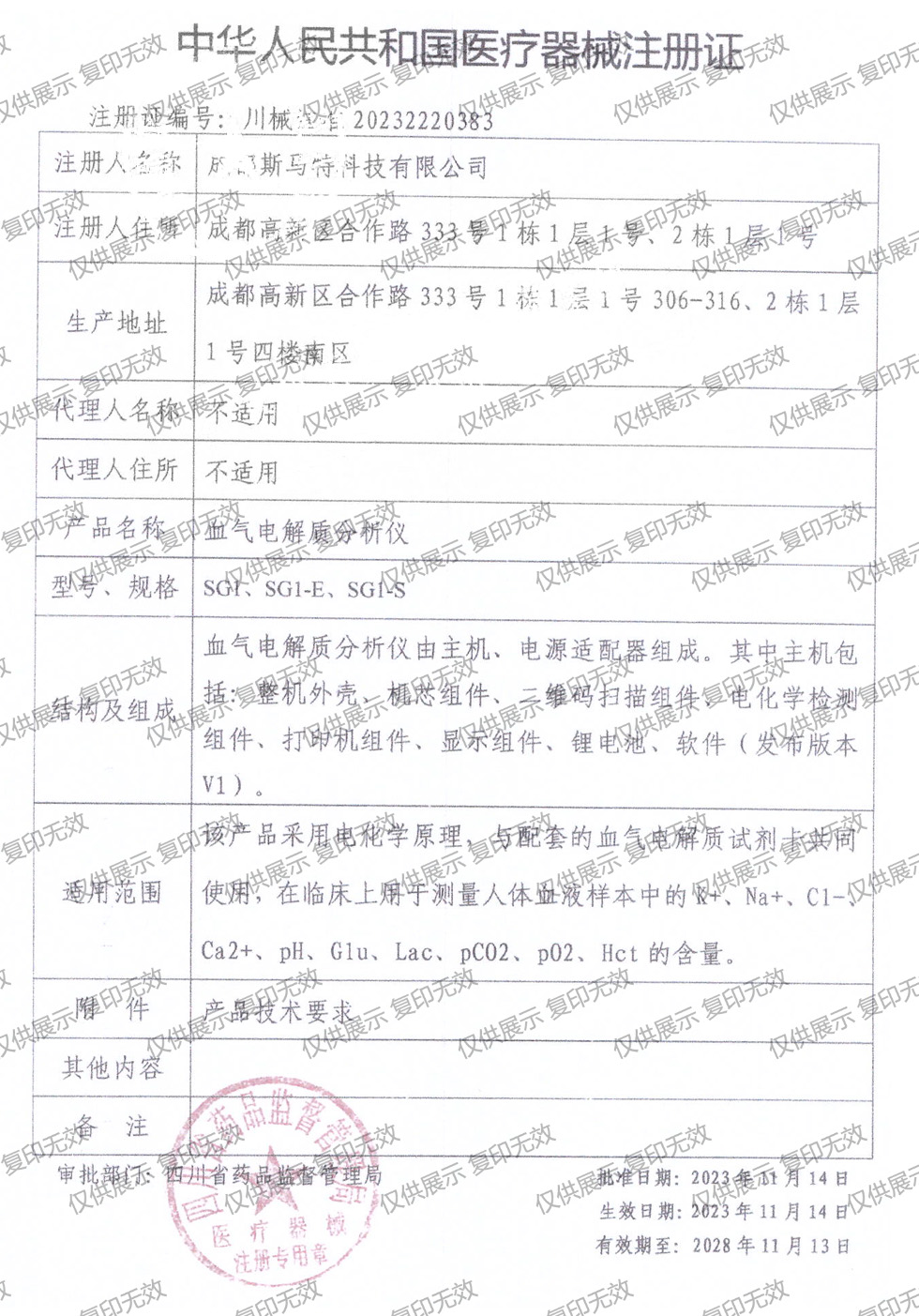 注冊證編號:川械注準20232220383